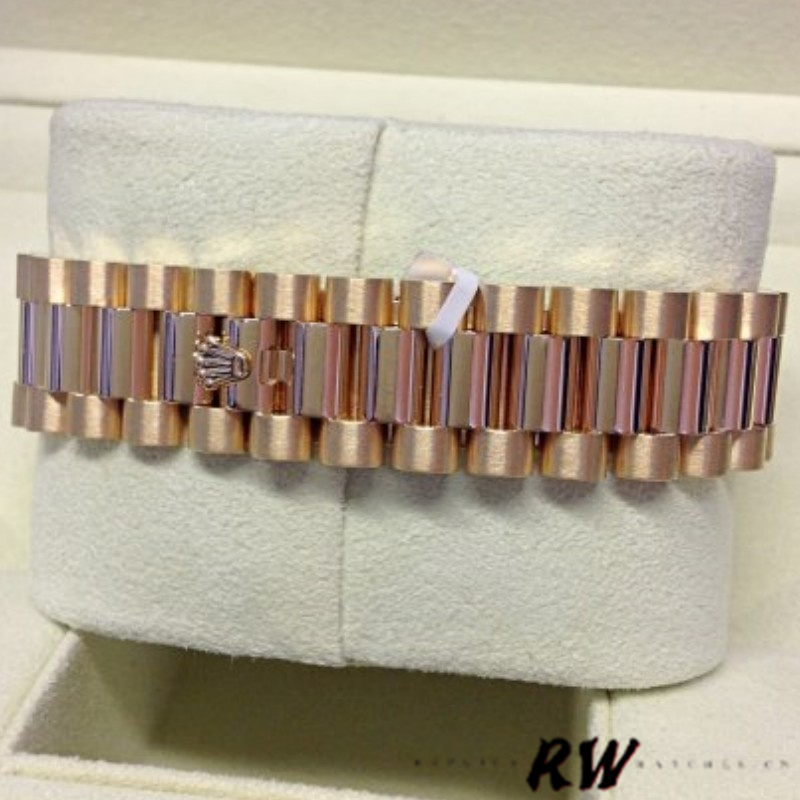 Rolex Day-Date 118238 Yellow Gold White dial Fluted Bezel 36mm Unisex Replica Watch has a Yellow Gold 36 mm Round Case with Screw Down Crown and a Yellow Gold Fluted Bezel. Featuring a white Roman numeral dial housing an external Cyclops date aperture at 3 O’clock and a day aperture in-between 11 and 1 O’clock , polished finish shoulders and case sides.Solid case back. The reliable Yellow Gold Oyster Bracelet will look great on your wrist.