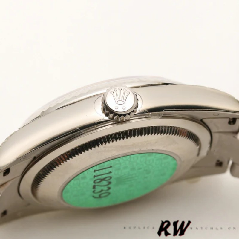 Rolex Day-Date 118239 Chocolate Brown Dial 36mm Unisex Replica Watch. 36mm white gold case with white gold fluted bezel.Chocolate Brown Dial with Roman Numerals, Date display at 3 o’clock position and day display at 12 o’clock position with a cyclops magnifying lens. White gold Oyster bracelet, hidden deployant clasp. Sapphire crystal. White gold case back.